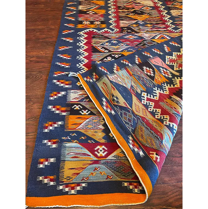 Introducing our exquisite reversible Kilim rug, a perfect blend of traditional artistry and modern functionality. This stunning rug not only enhances your decor with its vibrant patterns but also offers two unique designs in one, allowing you to update your space with ease.Reversible Kilim Rug