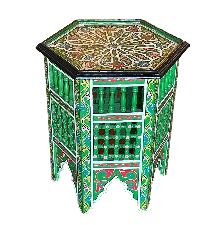 Hand-Painted Moucharabia Side Table: An Exotic Touch